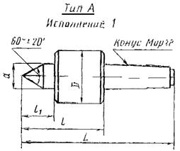 Тип А - наиболее распространённый и универсальный. Центровой валик закреплён постоянно, обеспечивает жёсткую и точную опору. Применяется для обработки валов, осей и других деталей со стандартными центровыми отверстиями. Центровой валик центров типа А на рабочей длине должен иметь твёрдость не менее 59 HRC.