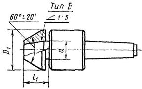 Тип Б - со сменной насадкой. Позволяет быстро переходить с одного типа рабочего конуса на другой без извлечения центра из пиноли, что ценно в условиях переналаживаемого производства. Насадка центров типа Б должна иметь твёрдость по наружному конусу не менее 59 HRC. Твёрдость посадочной конической поверхности центрового валика центров типа Б должна быть не менее 51,5 HRC.
