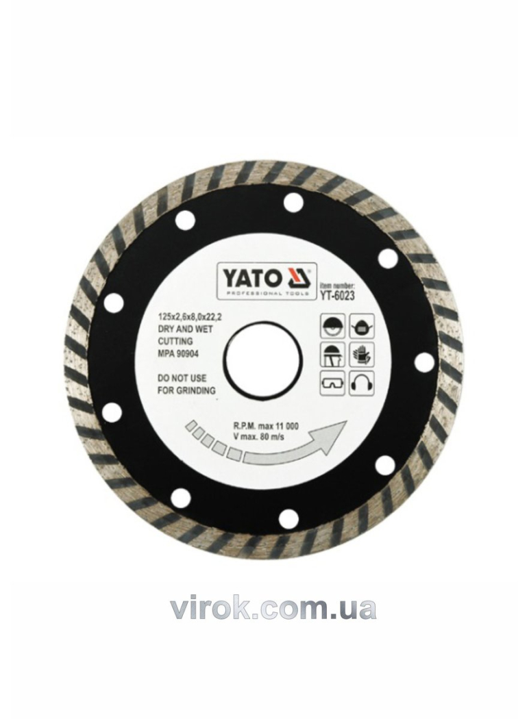 Диск алмазний турбо YATO : "TURBO" Ø= 125x8,0x22,2 мм. H= 2,6 мм