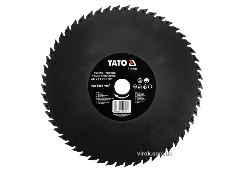 Диск-фреза відрізний і штробувальний по дереву, ПВХ. гіпсу YATO: Ø=230х 22,2 мм, макс. 8000 об/хв DW