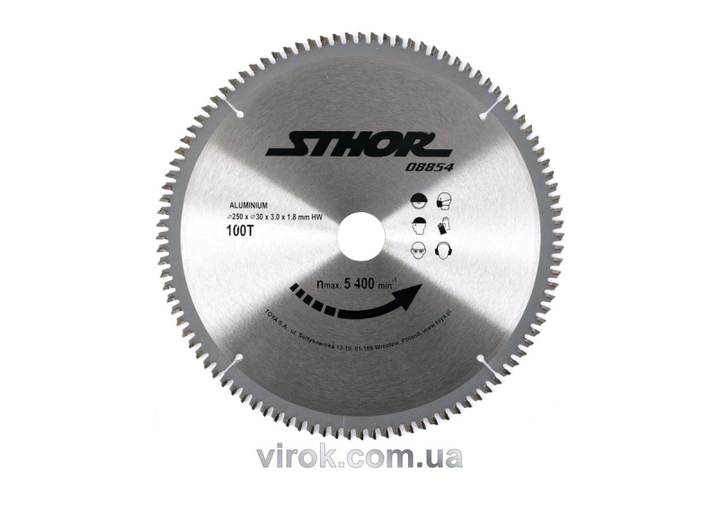 Диск пильний для алюмінію STHOR. Ø= 250/30 мм, h= 3 мм, 100 зубів