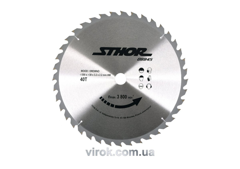 Диск пильний по дереву STHOR. Ø= 350/30 мм, h= 3,2 мм, 40 зубів