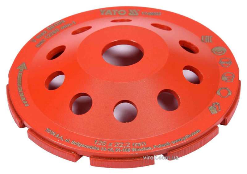 Диск шліфувальний алмазний YATO : 125 х 22.2 мм, 12200 об/хв, M14 [30]