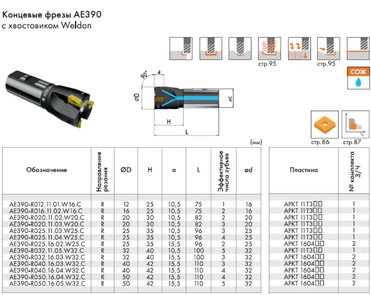 Назначение: Фрезы AE690 применяются для обработки пазов и уступов. Фреза рекомендуется для использования на станках с ЧПУ но возможно использование на универсальном оборудовании.