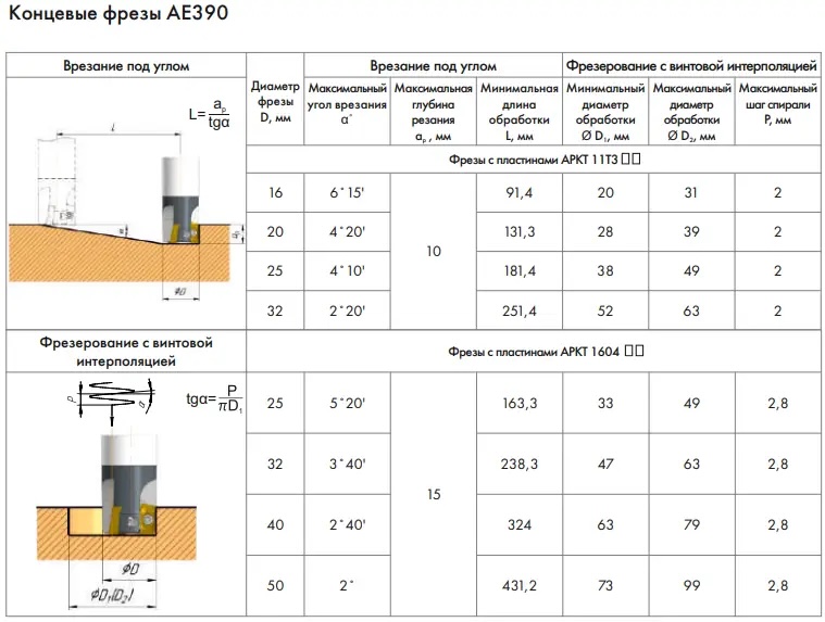 | Вид фрезерной обработки | Фрезерование пазов, Фрезерование уступов, Профильное фрезерование, Винтовая интерполяция, Плунжерное фрезерование, Врезание под углом, Торцевое фрезерование |