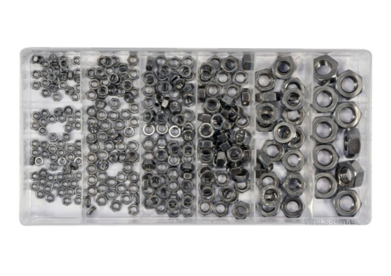 Гайки М3- М10 YATO : нержавіючі, пластикова коробка; наб. 300 шт. [5/20]