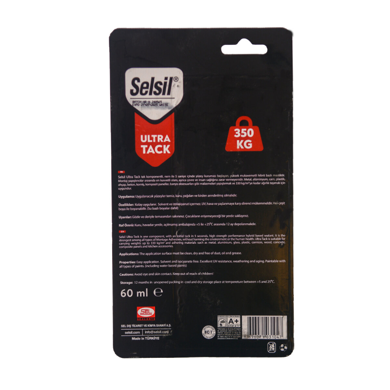 Герметик гібридний високоефективний SELSIL ,білий, V= 60 мл 20V246 ОСОБЛИВОСТІ ПРОДУКТУ Тип продукту Полімер з термінальною кількістю силану Механізм затвердіння Затвердіння від вологи Інтенсивність 1,56 ± 0,03 г/мл Зовнішній вигляд/колір Вставити Поверхневе сушіння 5-10 хв. (23°C та 50% відносної вологості) Тече 0 мм Твердість 50 ± 5 за Шором А Подовження при розриві >300% Втрата об'єму < -3% (23°C та 50% відносної вологості) Міцність на розтяг >2 Термічний опір від -40°C до +90°C Температура застосування від 5°C до 40°C Selsil Ultra Tack – це однокомпонентний високоефективний гібридний герметик (клей), що твердне під дією вологи. Поєднуючи всі механічні властивості поліуретанового герметика та силікону, Selsil Ultra Tack – це екологічно чистий герметик нового покоління, що не містить ізоціанатів та розчинників. Особливості Його можна використовувати для склеювання та герметизації у вологих та сирих середовищах. Не містить розчинників та ізоціанатів. Він без запаху, не залишає масляних плям на поверхні після нанесення та не пошкоджує поверхню, на яку наноситься. Його стійкість до ультрафіолетового випромінювання, атмосферних впливів та старіння чудова. Можна фарбувати всіма видами фарб (включаючи водоемульсійні) Легко наносити. Selsil Ultra Tack підходить для складання та склеювання металу, алюмінію, скла, пластику, дерева та бетону (не підходить для поверхонь з PE, PP, PC, PMMA, PTFE, силікону та бітуму). Його можна використовувати в багатьох сферах як еластичний клей та герметик для внутрішнього та зовнішнього використання в будівельній галузі; У герметизації будівельних та конструкційних елементів Герметизація на кухнях та у ванних кімнатах (склеювання дзеркал, скла) У зв'язуванні важких металів У застосуваннях для склеювання природного каменю