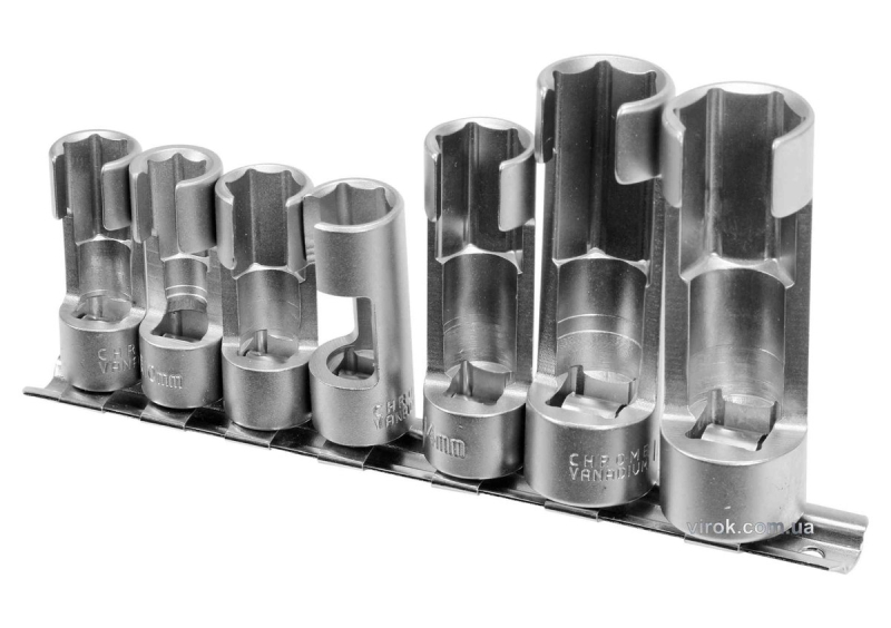 Головки торцеві відкриті для лямбда-зондів, датчиків YATO : 3/8" і 1/2", М10-19, CrV, 7 шт.