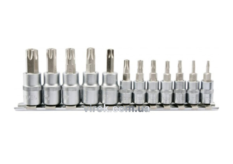 Головки торцеві з насадками YATO : "TORX TEMPERPROOF", квадрат 1/4, 3/8". Набір 12 шт. [10/40]
