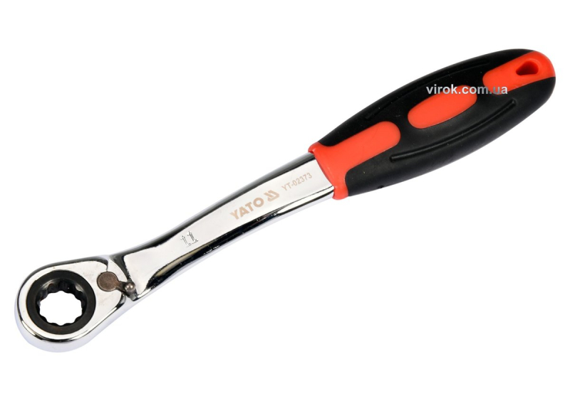 Ключ накидний, вигнутий з тріщаткою YATO: М11, HRC 42-48, Cr-V, з прогумов. ергономічною ручкою(DW)