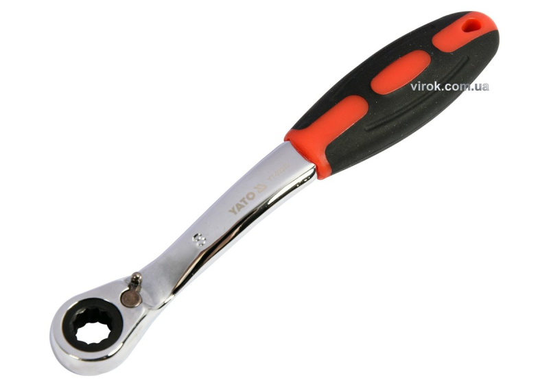 Ключ накидний, вигнутий з тріщаткою YATO: М8, HRC 42-48, Cr-V, з прогумов. ергономічною ручкою