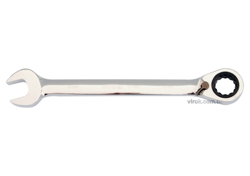 Ключ ріжково-накидний YATO з тріщаткою та перемикачем : CrV М=24 мм, l=330 мм