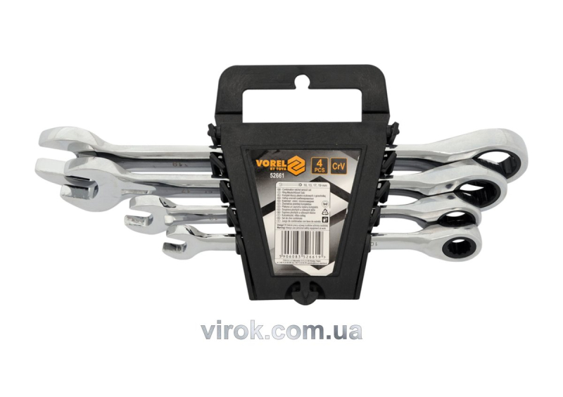Ключі ріжково - накидні з тріщаткою VOREL, набір 4 шт.