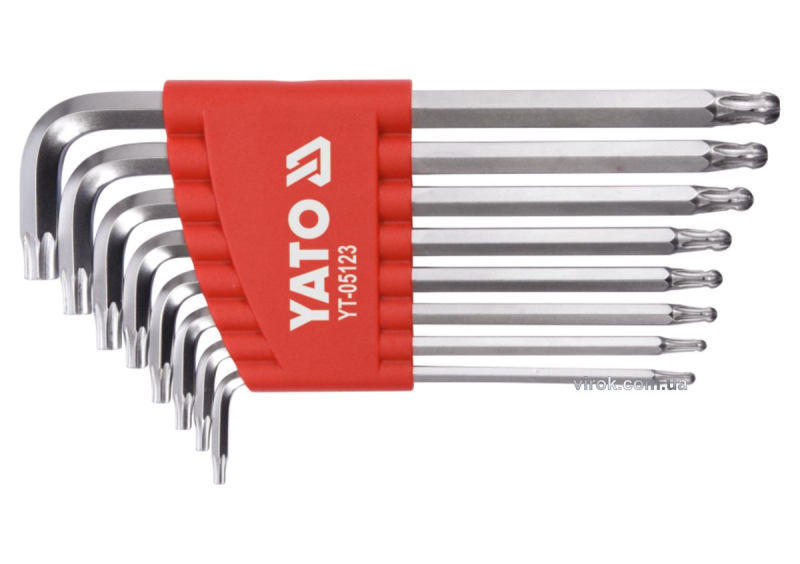 Ключі ТОRХ Г-подібні YATO : Т9-Т40, з кульовим наконечником, Cr-V, 8 шт