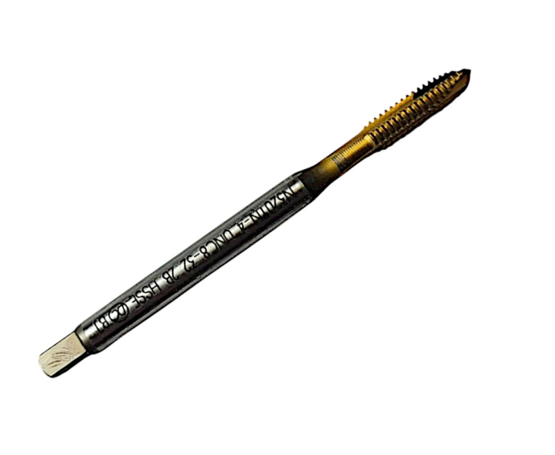 Метчик дюймовый UNC №8 32 ниток на дюйм Р6М5К5 (HSS-E) утолщенный хв. для сквозных отверстий N320TN-4 с покрытием TiN 196004 DC Swiss