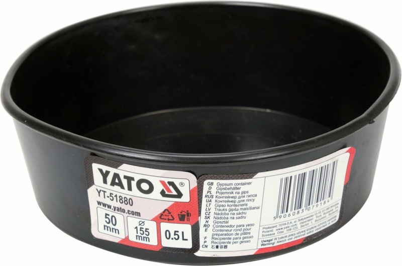 Миска гумова, плоска для гіпсу і будівельних розчинів YATO, об'єм- 0,5 л, Ø= 155 мм, H= 50 мм [20]