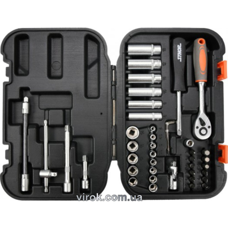 Набір головок торцевих, насадок STHOR : квадрат 1/4", М4-14 мм. з інструментами [42 Од.] [10]