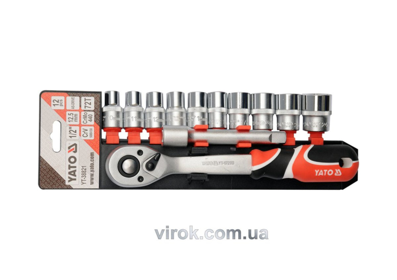 Набір головок торцевих YATO : квадрат 1/2", М10-24 з тріщаткою, подовжувачем. 12 Шт.