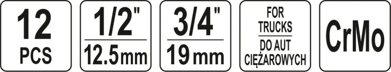 Набір насадок викруткових ударних YATO : TORX/HEX до квадратів 1/2", 3/4", 12 елем..