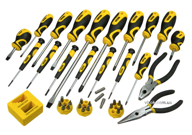 Набір викруток і насадок STANLEY : сумка, плоскогубці, магнітезатор, 39 елементів.