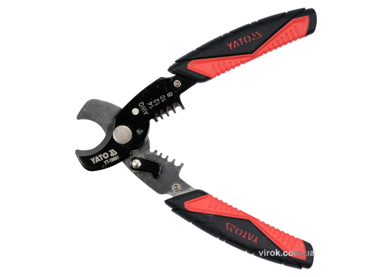 Ножиці для дроту YATO : Ø=10,5/3 мм, зі знімачем ізоляції Ø=1.6-3.2 мм, l=170 мм [6/24]