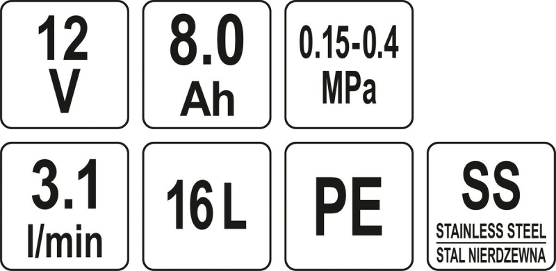 Оприскувач акумуляторний FLO ранцевий : 12В, 8 АГод, бак- 16 л, продукт.- 3 л/хв