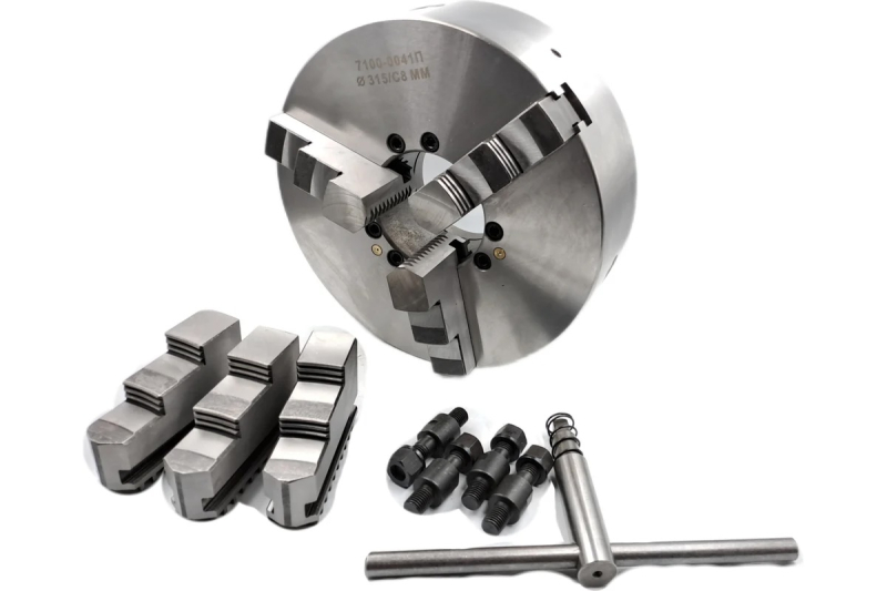 Патрон токарный Патрон токарный ф315 3-х кул. 7100-0041П (К11-315C8, полная комплектация) PREMIO - это высококачественный самоцентрирующий спирально-реечный 3-кулачковый патрон, изготовленный в соответствии с требованиями ГОСТ 2675-80. Предназначен для базирования и надёжного зажима цилиндрических, шестигранных и других тел вращения на универсальных токарных, токарно-винторезных и специальных станках.