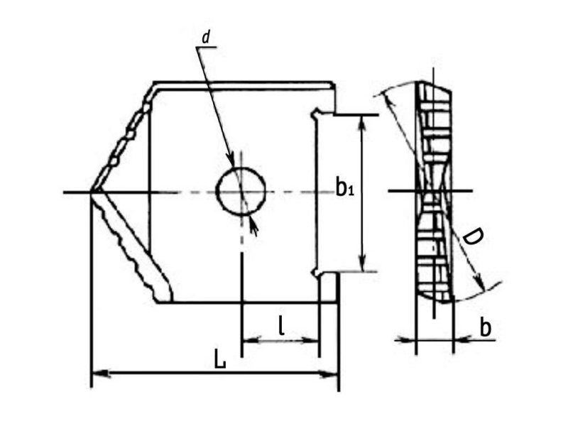 Пластина сменная режущая диаметром 110 мм из быстрорежущей стали Р6М5 изготовлена по ГОСТ 25526-82. Имеет следующие размеры: толщина пластины 18 мм в поле допуска h7, посадочная ширина (b1) 90 мм в поле допуска h7, общая длина пластины 99 мм, расстояние от центра отверстия до торца посадочного паза 32 мм. Диаметр установочного отверстия в пластине 22 мм. Сверло перовое по металлу 110,0 Р6М5 2000-1269 устанавливается на оправку с коническим или цилиндрическим хвостовиком.