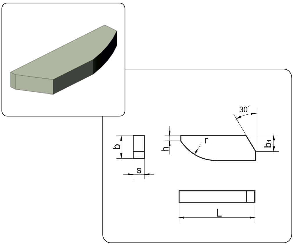 | Обозначение | L, мм | b, мм | s, мм | b1, мм | h1(пред.откл.+0.4), мм | r, мм |