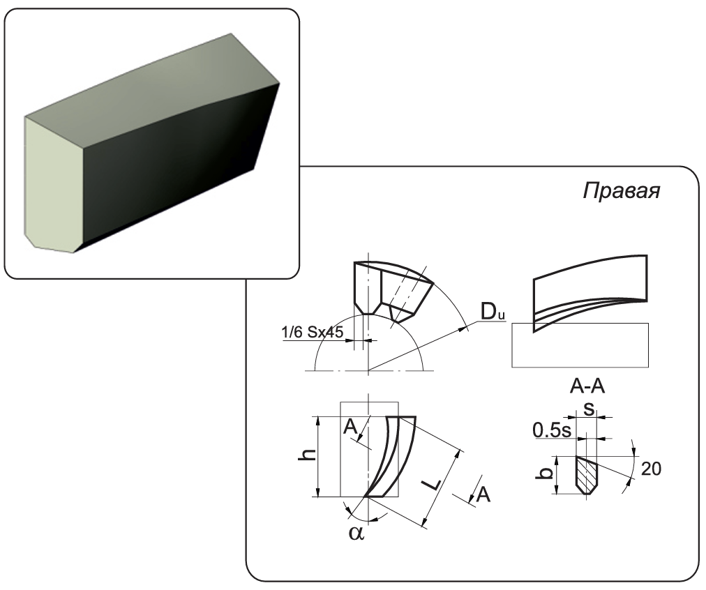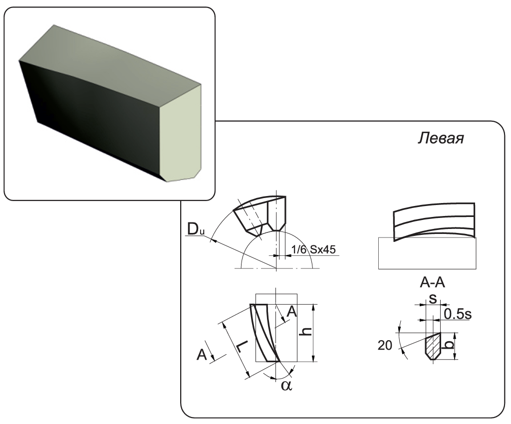 | Обозначение | Du, мм | а, град | угол винтовой поверхности t | s±0.5, мм | b±0.5, мм | L±0.5, мм | h, мм |