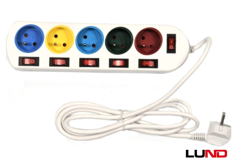 Подовжувач мережевий LUND : L= 2 м, 5 гнізд з 5 вимикачами, 3-жильний Ø=1 мм², з заземленням