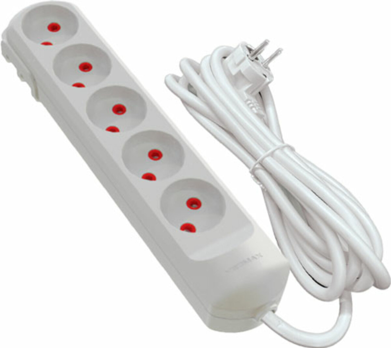 Подовжувач мережевий VIROK: l= 5 м, з 5 гніздами без заземлення
