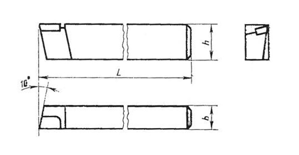 | Обозначение по ГОСТ (10°) | Обозначение по ГОСТ (0°) | Сечение резца, h×b (мм) | L, мм |
