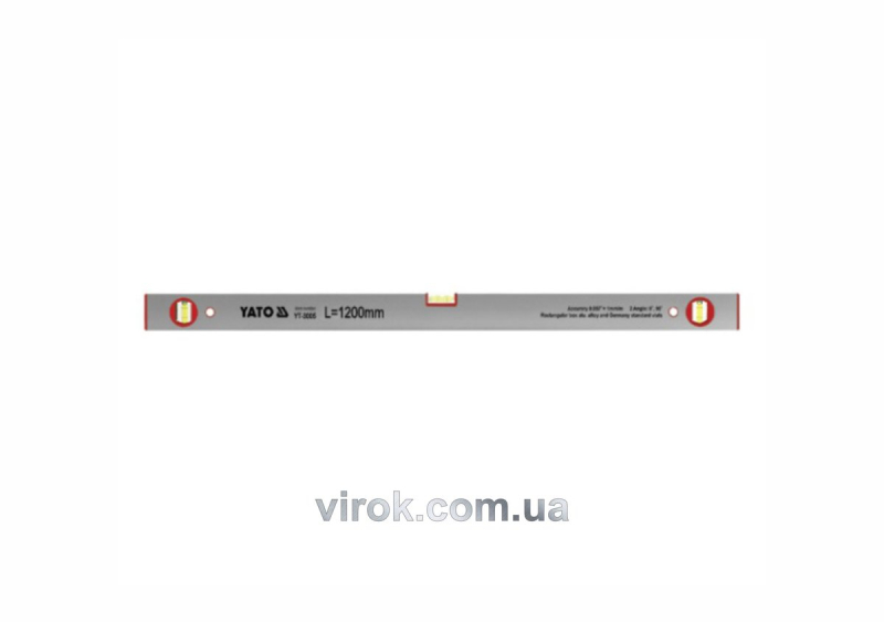 Рівень алюмінієвий YATO : L= 120 см. 3 капсули