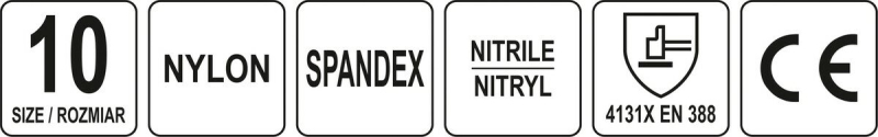 Рукавиці робочі нейлонові YATO YT-74759 Серія: GRD Розмір: 10 Категорія захисту: II Стандартний: EN 388:2016 матеріал: рукоятка: покрита спіненим нітрилом з додатковими нітриловими точками) Стійкість до проколів: 1 Стійкість до порізів: x Стійкість до порізів: 1 Стійкість до розриву: 3 Стійкість до стирання: 4 Пари: 1 Рукавички захисні робочі з нейлону темно-сірого кольору з додаванням спандекса, покритого в захватній частині спіненим нітрилом чорного кольору з нітриловою точкою. Додатковою перевагою нітрилу є стійкість до бензину, дизельного палива, парафіну, розчинників, мастильних матеріалів тощо. Безшовна конструкція з високоякісного нейлону — це підвищена стійкість до розриву та збереження гнучкості протягом тривалого часу. Маленький 15-грамовий стібок, тобто 15 стібків на дюйм, є меншою вагою та навіть кращим зчепленням з рукою. Нітрилове протиковзке вимовлення посилює зчеплення та впевненість у утриманні сухих предметів. Відливна частина: покрита спіненим нітрилом з додатковим фільтром з нітрилових крапок, зовнішня частина: нейлон з додаванням спандексу: гнучка манжета