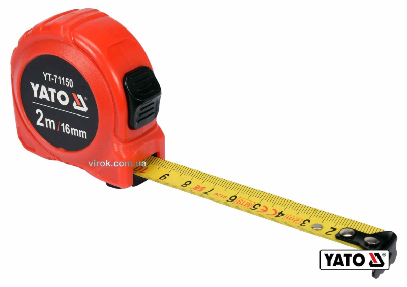 Рулетка YATO: L=2м x16 мм, з сталевою стрічкою, нейлоновим покриттям, подвійним блокуванням [12/120]