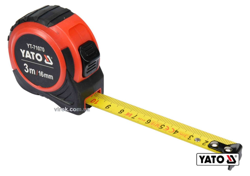 Рулетка YATO : L= 3 м x 16 мм, з сталевою стрічкою, нейлоновим покриттям