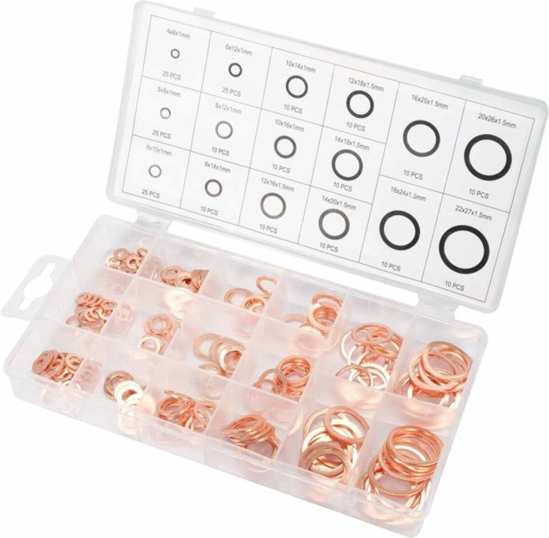 Шайби мідні YATO, Ø= 4/8 - 5/9 - 6/10-6 -12 мм, та з 8 по 22 наб. 220 шт