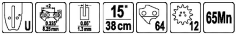 Шина для пили YATO l=15"/38см (64 ланок) 0,325" (8,25 мм) .Т-0,05" (1,3 мм)---YT-84945,YT-84962