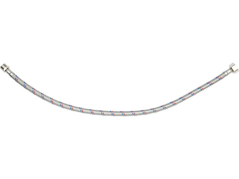 матеріал нержавіюча сталь, гума EPDM Довжина 600 мм Внутрішній діаметр 8 мм Зовнішній діаметр 12 мм Розмір різьби з'єднання G1/2(F) x G3/8(M) Потік води 32 л/хв Максимальний тиск 1 МПа Максимальна температура 70˚C застосування з’єднувальні змивки унітазів, з’єднувальні вентилі