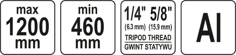 Штатив тринога YATO телескоп (3 секціі) . кріплення 5/8", з штангою 30 cм. H= 46-120 cм. алюмінієвий