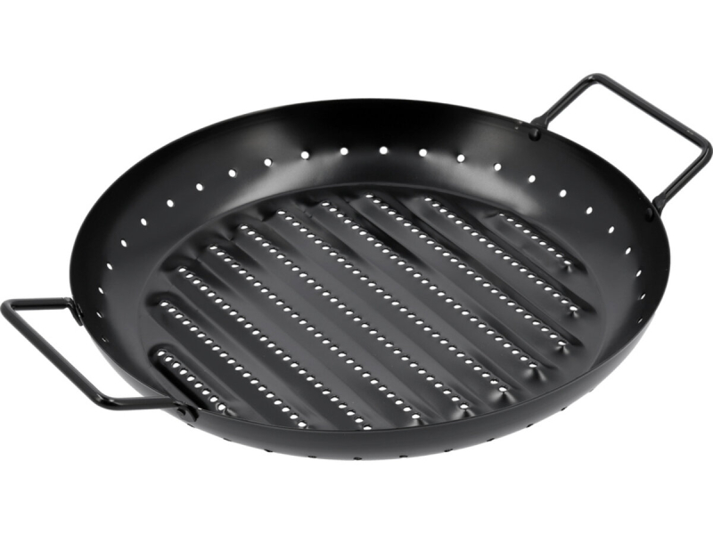 Сковорода для гриля LUND 99850 Характеристики: антипригарне покриття забезпечує легке та здорове випікання інгредієнтів і полегшує очищення Легко ребриста поверхня сковороди запобігає надмірному пригоранню їжі. Численні отвори на дні та з боків забезпечують кращу циркуляцію тепла та диму, а також ефективніше відводять зайвий жир. 2 ручки внутрішній діаметр: 30 см розміри виробу: 38 x 30 x 4 см вага: 740 г Сталева ребриста сковорода-гриль з антипригарним покриттям. На відміну від одноразових алюмінієвих підносів, антипригарна сковорода-гриль є багаторазовою та не виділяє шкідливих речовин за високих температур. Це здоровіша та екологічніша альтернатива, яка дозволяє насолоджуватися смаком страв на грилі без компромісів.
