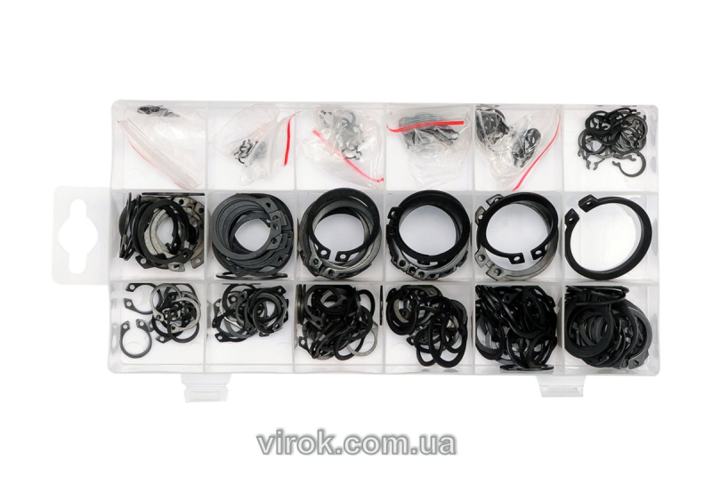 Професійний набір з 300 зовнішніх кілець стопорних. Містить 18 різних розмірів.