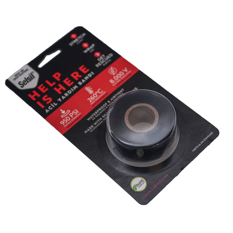 Стрічка ремонтна термоусадочна SELSIL 3,6 м х 2,54 см. для труб, шлангів, ізоляції (силіконова)