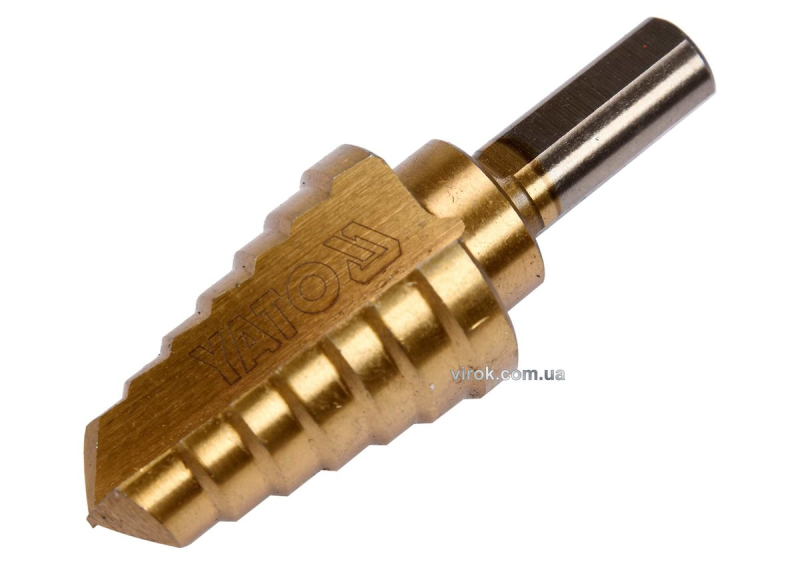 Свердло конічне ступінчасте титанове по металу YATO : Ø= 14-26 мм, HSS 4241, L= 70/40 мм