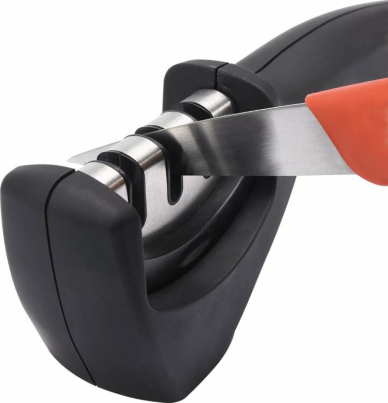 Багатофункціональна точилка для сталевих і керамічних ножів. Має 3 леза: - алмазне - призначене для попереднього заточування керамічних ножів - карбід вольфраму - призначене для попереднього заточування сталевих ножів - керамічне - призначене для остаточного заточування Корпус виготовлений з витривалого і міцного ABS. З іншого боку, зручна рукоятка з протиковзкою підставкою забезпечує приємний і надійний хват точила під час роботи. Знімна робоча частина дозволяє легко і ретельно очистити точило. Для заточування сталевих і керамічних ножів.