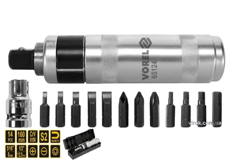 Викрутка ударна VOREL : 12 магнітних насадок, адаптер