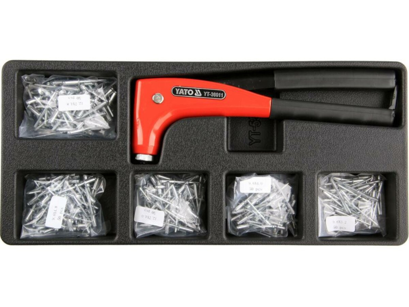 Вклад до інструментальної шафи YATO; заклепник ручний для Ø= 2.4, 3.2, 4, 4.8 мм і 250 алюмін заклеп