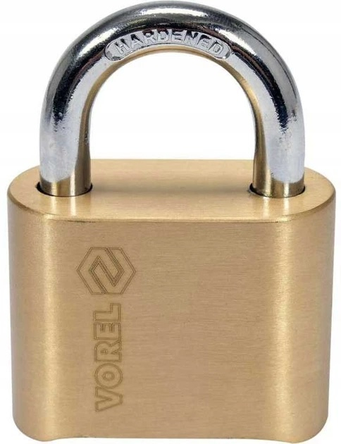 Замок навісний з кодовим замком на 4 кільця. Латунний корпус шириною 50 мм сталеве ярмо 4 цифри шифру