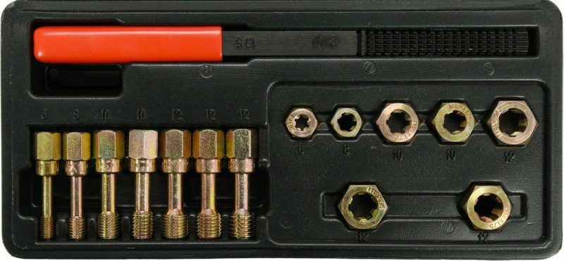 У набір входить 7 метричних різьбовдевачів, 7 метричних різьбовдевачів і 1 двосторонній різьбовий файл. Ідеально підходить для швидкого ремонту пошкодженої різьби на метричних болтах і гайках.